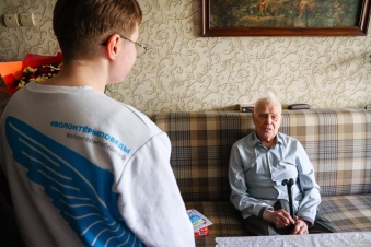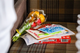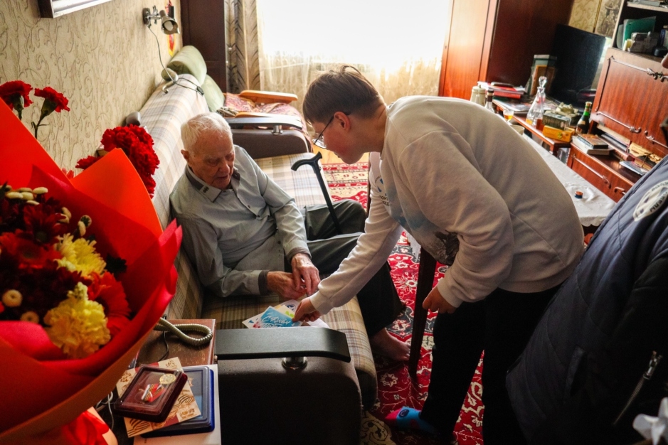 Ребята поздравили ветерана лично, передали подарки и письма от юных новгородцев!