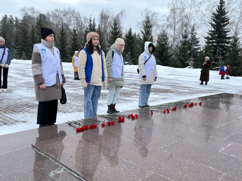 Сегодняшний день Волонтёры Победы начали с возложения цветов к Вечному Огню в Парке Победы города Уфы.
