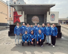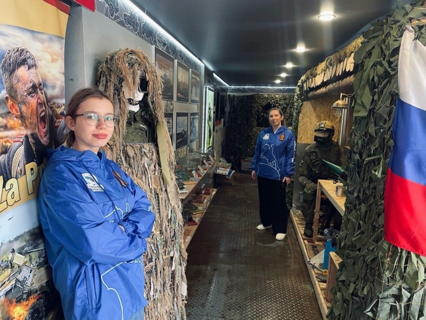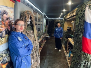 Волонтёры Победы встречали посетителей передвижной выставки и помогали им.
