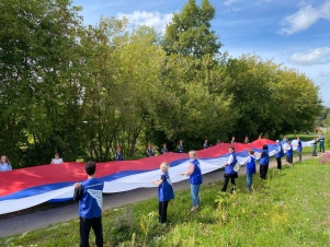100-метровый флаг России развернули на набережной Уводи. Более трехсот жителей областного центра присоединились к акции «С флагом России». Красочная акция стартовала с забега, который возглавила призёр Олимпийских игр, многократная чемпионка мира и Европы по дзюдо Любовь Брулетова. На финише участники забега вместе с присоединившимися к ним молодежными активистами и волонтерами развернули 100-метровое полотнище флага России и исполнили гимн Российской Федерации.