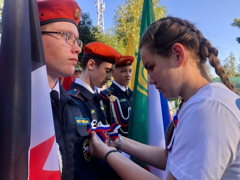 В рамках акции «Российский триколор» Волонтёры Победы региональных отделений Тальменского и Первомайского районов раздали в общественных местах несколько тысяч лент-триколор. Ребята крепили ленточки прохожим, при этом делились своими знаниями об истории возникновения нашего флага и его официальном признании. А Волонтёры Победы Луговской школы Тальменского района еще и провели для сельских ребятишек спортивную игру «Красное знамя».