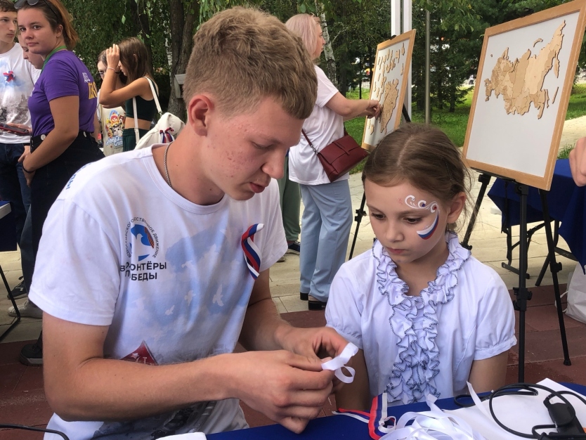 В День флага также прошел XIII Фестиваль добровольческих объединений «Вместе мы — добровольцы Алтая!». Более 1200 молодых людей собрались для участия в фестивале. Более 40 тематических площадок работало в этот день. Волонтёры Победы представили площадку по изготовлению виньеток из триколорных лент. Каждый участник при помощи добровольцев сделал себе брошь – символ Дня государственного флага России.