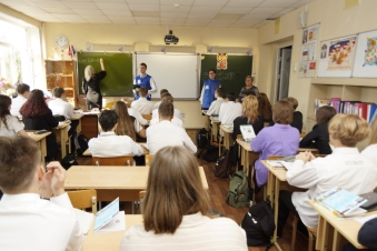 Алексей Молотов, функциональный координатор пресс-службы, приехал в школу к ребятам, где помог в организации знаменной группы на торжественной линейке. После, совместно с координатором школьного отряда Волонтëров Победы Марией Никитиной поздравил учащихся, педагогов и администрацию учреждения с Днëм знаний, подробнее рассказал про деятельность Движения и пригласил вступить в школьный отряд.
