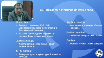 Во время встречи обсудили план ближайших мероприятий и проектов, благоустройство памятных мест и воинских захоронений, премию «Готов к Победам», конкурс «Моя Победа», акцию «С Новым годом, ветеран!». В том числе была затронута подготовка к мероприятиям, приуроченным к Параду Памяти, посвящённому военному параду 7 ноября 1941 года в «Запасной столице» городе Куйбышеве. Участники совещания также обсудили ключевые моменты по подготовке к 80-летию Победы в Великой Отечественной войне.