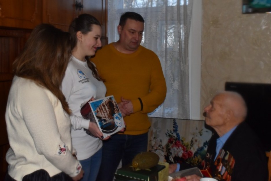 Заместитель главы города вручила Михаилу Григорьевичу медаль «75 лет Победы в Великой Отечественной войне 1941—1945 гг.», а Волонтёры вручили букеты цветов, конверт с поздравительными письмами от студентов и школьников написанных в рамках Всероссийской Акции «Письмо Победы», поздравили с Днем Рождения и пожелали крепкого здоровья. Михаил Григорьевич был растроган и сердечно поблагодарил всех
