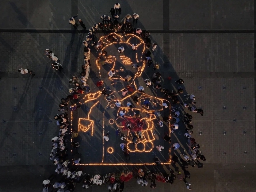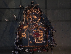 Вместе с неравнодушными горожанами организаторы и волонтёры выложили из свечей портрет участника Великой Отечественной войны Гази Загитова, награждёного многими орденами и медалями, в том числе Красной Звезды.
