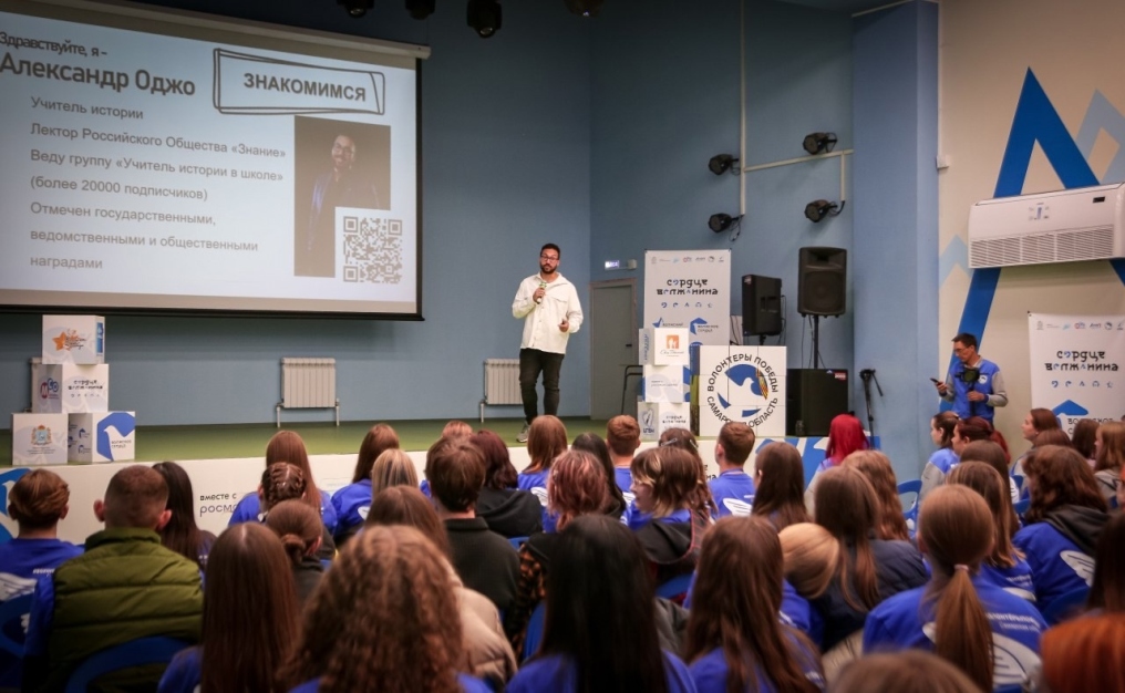 Вторая половина дня у Волонтёров Победы была насыщенной: образовательные блоки шли один за другим. На мотивационной интерактивной встрече «Передача традиций и ценностей семьи» спикером выступил Александр Оджо, лектор Российского Общества «Знание», учитель истории, эксперт отдела авторского контроля Государственного Университета Просвещения.