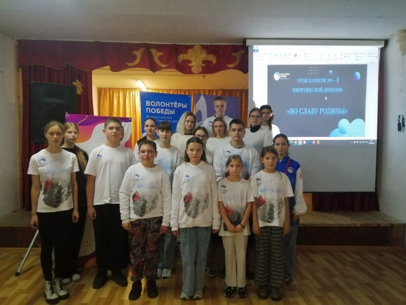 Волонтёры Победы Республики Хакасия активно проводят уроки памяти «Во славу Родины». В это раз слушателями стали обучающиеся Туимской и Копьёвской школ. Исторический урок посвящён 309-й стрелковой Пирятинской дивизии, сформированной на территории Республики.