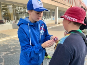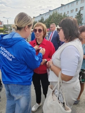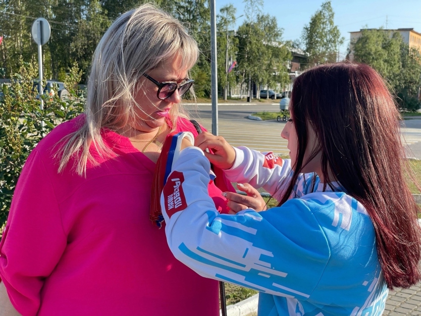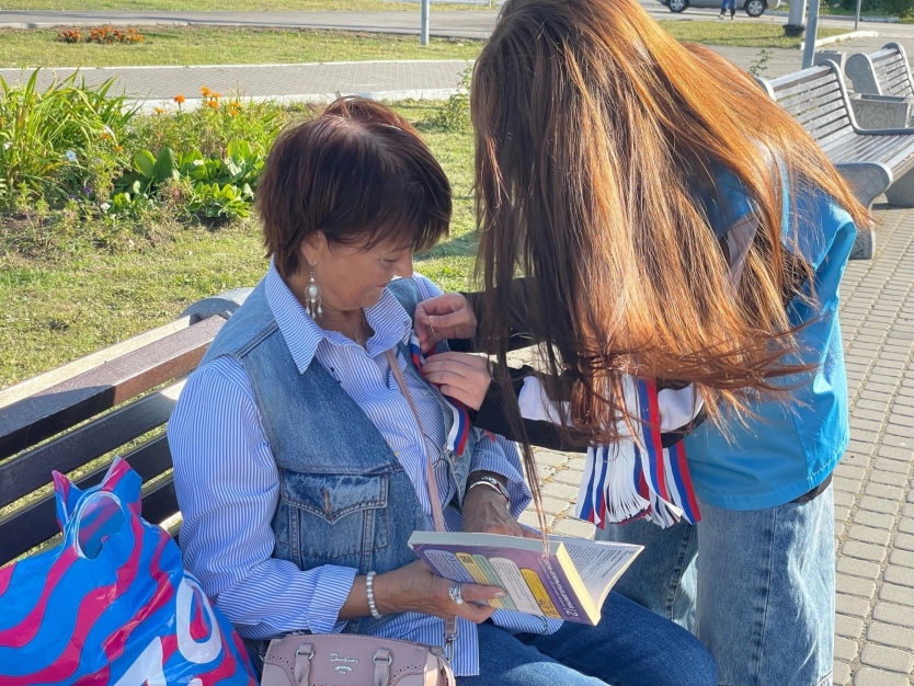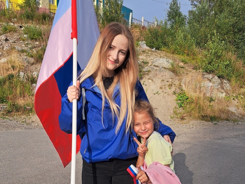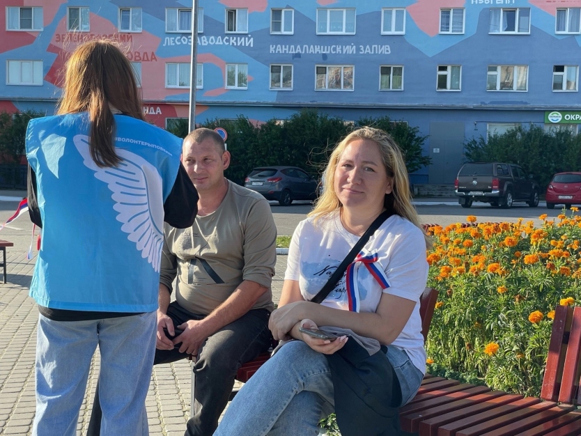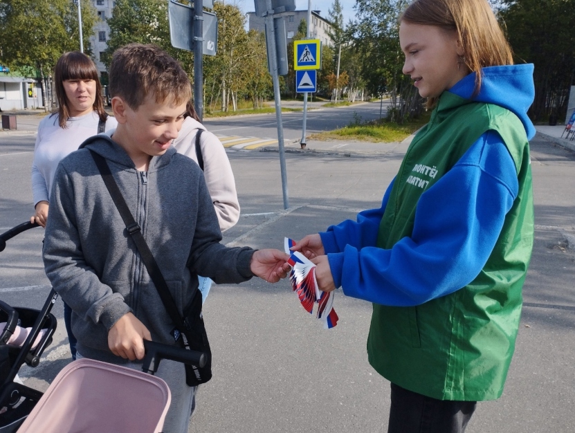 Добровольцы совместно с сотрудниками молодежного пространства СОПКИ, в рамках патриотической акции «Цвета Родины», раздавали трехцветные ленты и информационные листовки жителям города Кола.