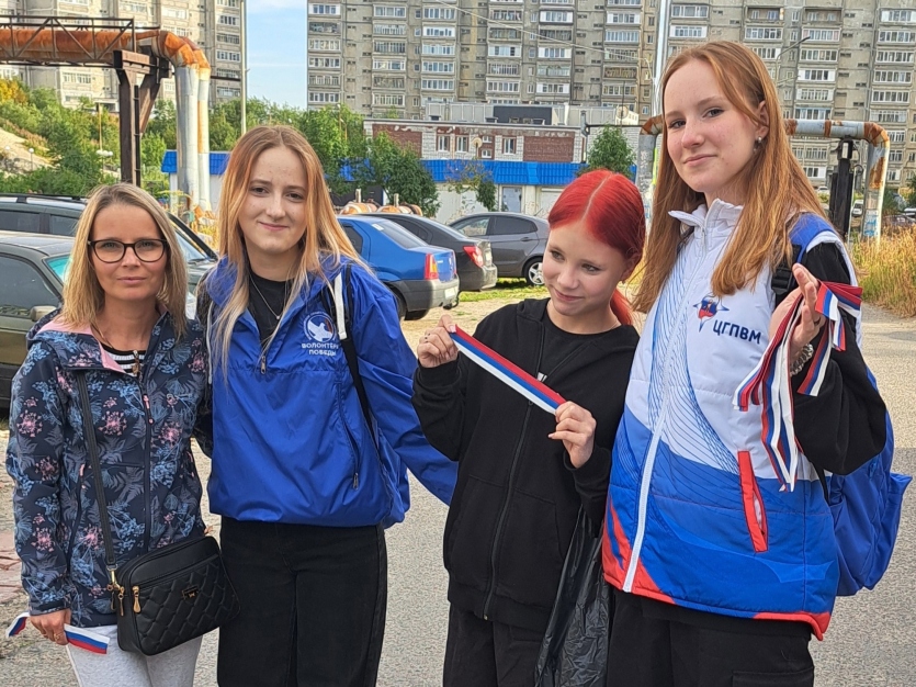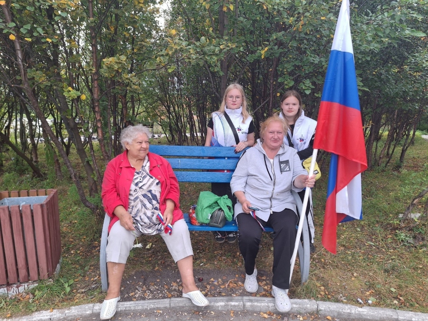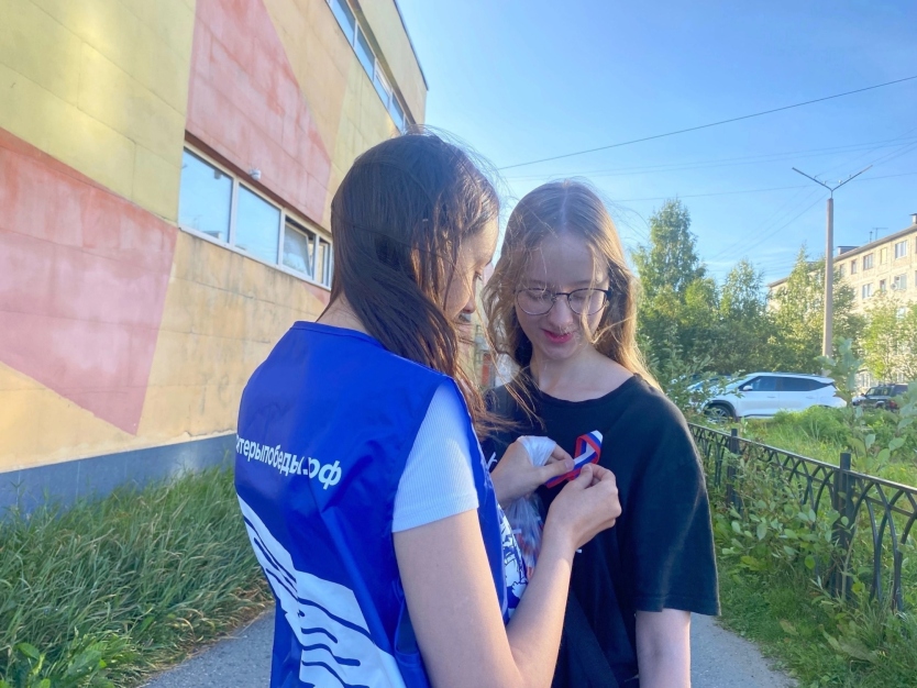 Во всех микрорайонах города активисты муниципального штаба «Волонтёры Победы» раздавали ленты в бело-сине-красный цвет жителям Кандалакши.