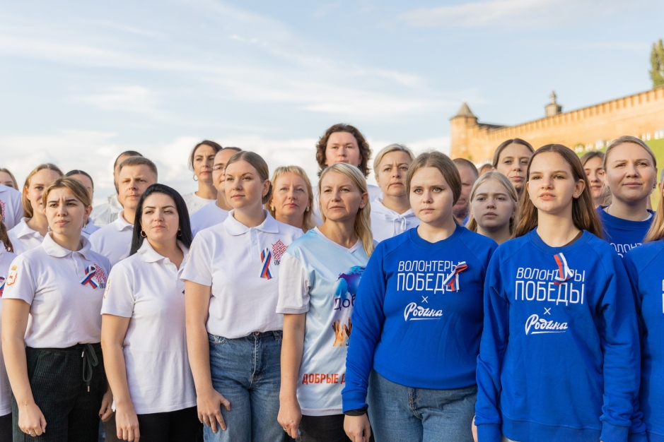 В состав хора вошли жители Нижегородской области, волонтеры и руководители волонтерских объединений, представители регионального отделения Российского движения детей и молодежи, воспитанники Нижегородского центра военно-патриотического воспитания и военно-патриотического лагеря «Хочу стать десантником», а также артисты ансамбля народной песни и танца «Любава».