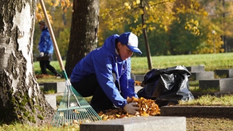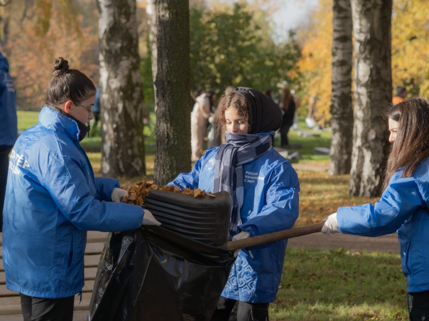 19 октября в Санкт-Петербурге состоялся общегородской субботник, в рамках которого школьники, студенты, активисты районных штабов и серебряные Волонтёры Победы помогли с уборкой листьев на территории Пискарёвского мемориального кладбища.