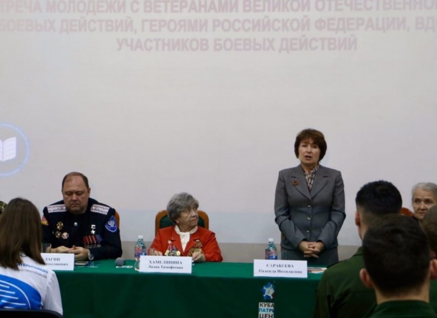 В встрече приняли участие студенты, представители военно-патриотических клубов, поискового школьного отряда "Патриоты Кубани", воспитанники ВПК "Пост № 1" города Краснодара