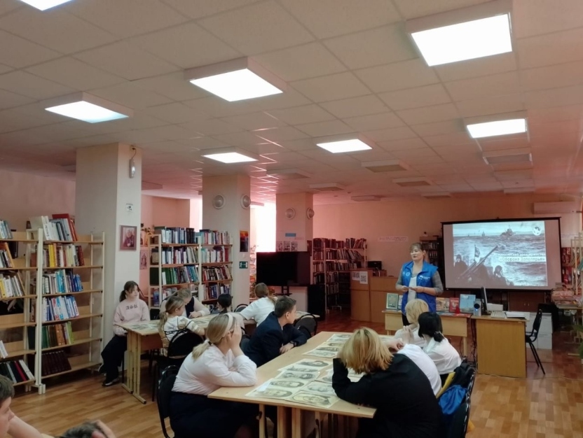 Волонтёры Победы Усть-Донецкого района рассказали школьникам о героической обороне советского Заполярья во время Великой Отечественной войны, которая длилась около четырёх лет и стала одним из важнейших этапов противостояния с фашистской Германией.