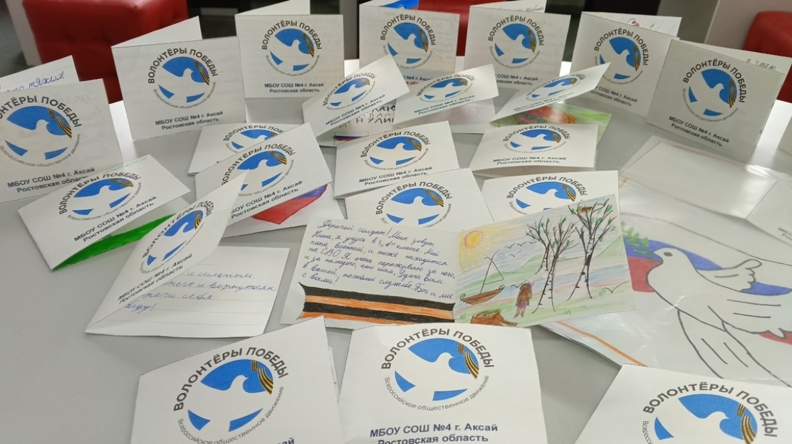 В завершение урока волонтёры вручили ученикам открытки с символикой движения, чтобы дети могли выразить свои тёплые пожелания защитникам Отечества.