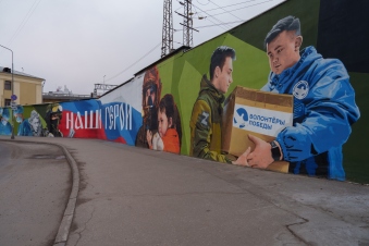 На арт-объекте изображены участники специальной военной операции, советский воин времен Великой Отечественной войны, медики, пожарный и волонтёры. Вместе с участниками специальной военной операции и Волонтёрами Победы обновлённый мурал приехал посмотреть глава Нижнего Новгорода Юрий Шалабаев.