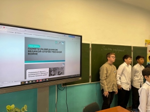 7 ноября Волонтёры Победы МБОУ СОШ им. Хуснутдинова А.Г. села Учалы провели для учащихся 8-ых классов урок «Памяти разведчиков Великой Отечественной войны».