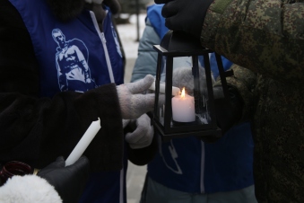 Священный огонь из Храма Дмитрия Донского к мемориалу доставил спецпредставитель Губернатора Тюменской области по вопросам специальной военной операции, Директор Регионального центра допризывной подготовки и патриотического воспитания «Аванпост» Савченко Николай Юрьевич.
