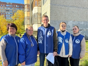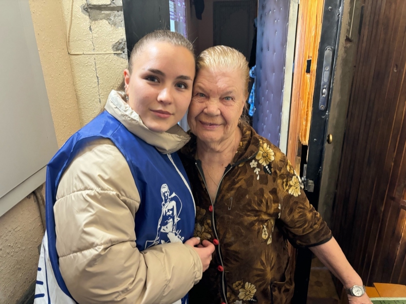 Одной из первых, кто получила поздравления от волонтёров, стала Карпенко Екатерина Николаевна. Добровольцы вручили ей открытку и сладкий подарок для хорошего настроения, а также навели порядок на придомовой территории.