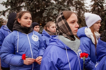 В День памяти русских солдат, погибших в Чечне, активисты направления «Великая Победа» провели церемонию возложения цветов к памятнику в Белгороде.