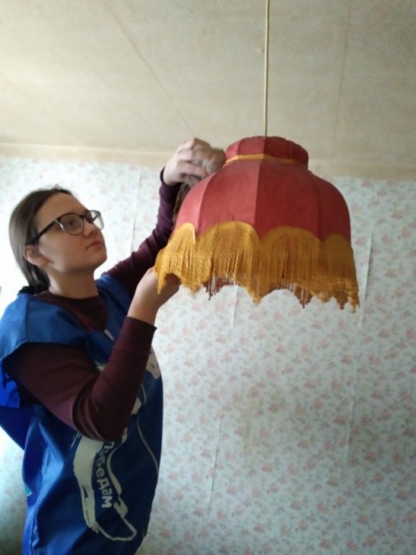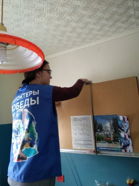 А после добровольцы сделали влажную уборку и передали Поликарпу Фёдоровичу письма Победы, написанные учениками образовательных учреждений города.