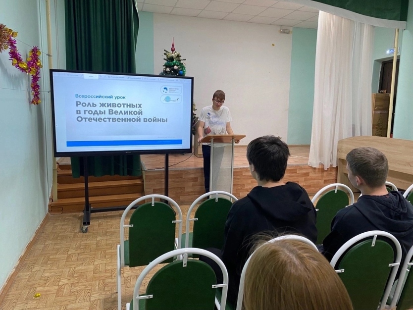 Активисты Движения «Волонтёры Победы» провели урок, посвящённый роли животных в годы войны, для обучающихся школы № 39, школы № 14 города Иваново и Шилыковской средней школы Лежневского района.