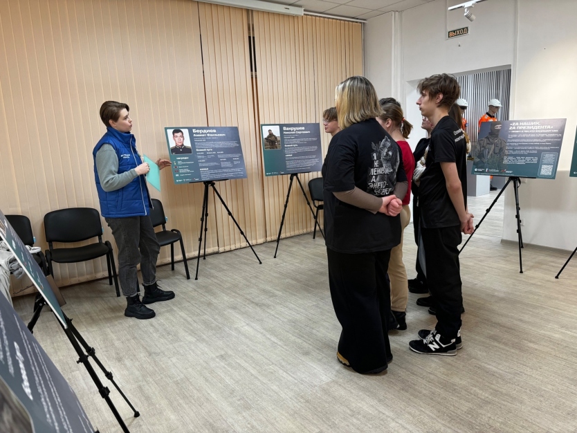 В музее «У Оленьей горы» ребята соприкоснулись с историями участников СВО в формате выставки в рамках проекта «Za наших. Za Президента». Эти истории – живое свидетельство того, что патриотизм и любовь к Родине не пустые слова.
