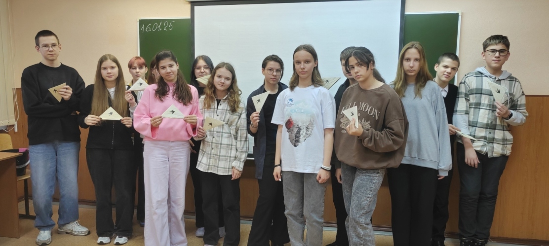 Для 9в, 7а классов лидер Движения провела информационный урок по акции «Блокадная ласточка», рассказала про операцию «Искра» и прорыв блокады 18 января 1943 года, а также провела мастер-класс по изготовлению фронтовых конвертов-треугольников.