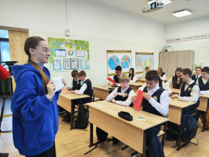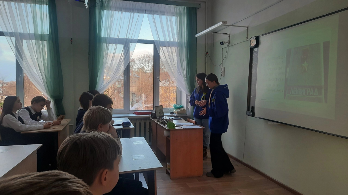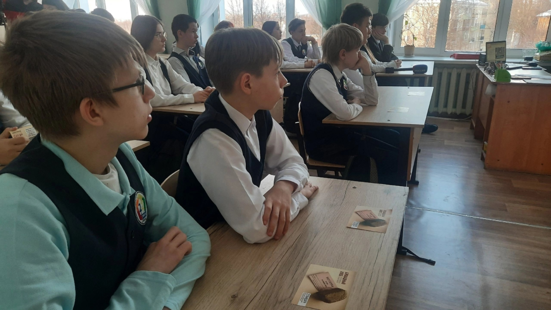 На уроке Валентина Сергеева – тренер «Волонтëров 80» и Екатерина Корженевская – тим-лидер регионального центра подготовки добровольцев рассказали школьникам о блокаде Ленинграда, об ужасах войны, которые довелось пережить жителям города, о героизме защитников, а также символе того времени – кусочке хлеба весом 125 грамм, минимальной норме выдачи хлеба в Ленинграде в самый трудный период блокады – зиму 1941-1942 гг.