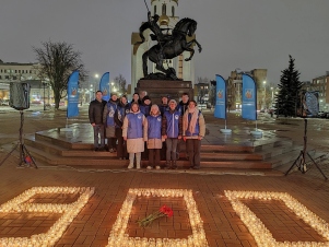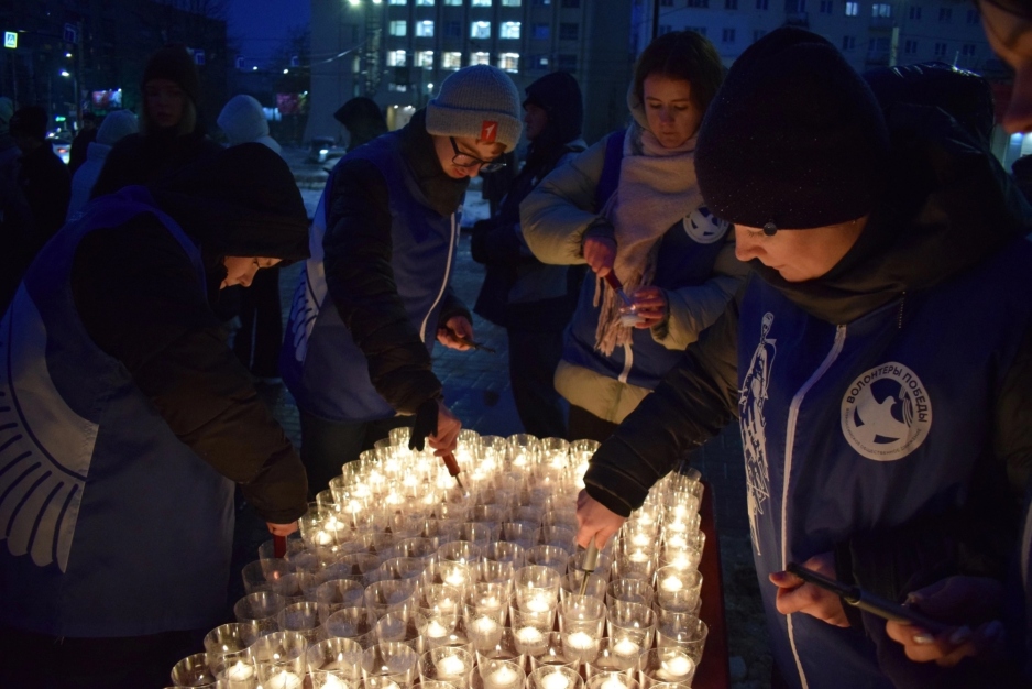 На площади Победы города Иваново собрались жители города разных возрастов, чтобы зажечь 900 свечей и почтить минутой молчания память защитников Ленинграда и героев Великой Отечественной войны.