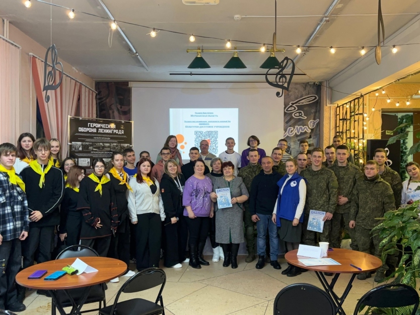 В молодёжном пространстве «СОПКИ» города Оленегорск состоялась Всероссийская интеллектуальная игра Р.И.С.К. «Блокада Ленинграда», организованная руководителем местного отделения ВОД Волонтёры Победы.