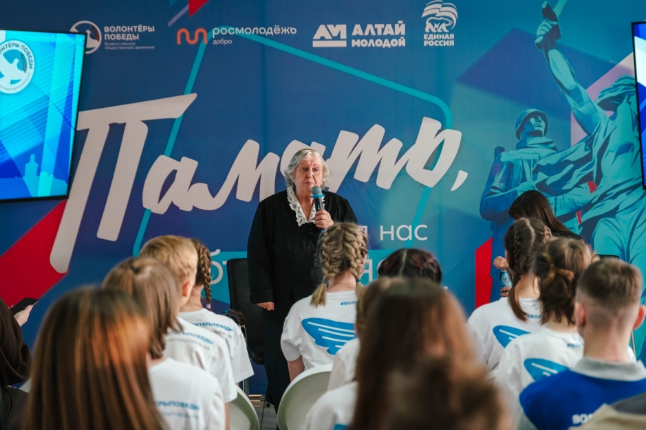 В центре подготовки добровольцев Международного волонтёрского корпуса 80-летия Победы Алтайского края прошла встреча с жительницей блокадного Ленинграда Светланой Михайловной Ерыгиной. Волонтёры Победы, активисты поискового движения, бойцы военно-патриотических клубов услышали историю жизни Светланы Михайловны: как она пережила блокаду и как переехала вслед за мужем на Алтай. Светлана Михайловна дала напутственные слова для волонтёров: «Желаю в юбилейный год приложить все свои усилия и способности в организации мероприятий, а также продолжать помогать пожилым людям, ветеранам и не забывать о семьях участников специальной военной операции».