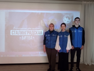 Волонтёры Победы Шолоховский района организовали памятные мероприятия: церемонию возложения цветов у монумента «Воинская слава», интерактивную викторину для начальных классов по Сталинградской битве, урок мужества «Но выдержал железный тот солдат…», час мужества «Битва за Сталинград», где участники узнали об условиях борьбы защитников города.