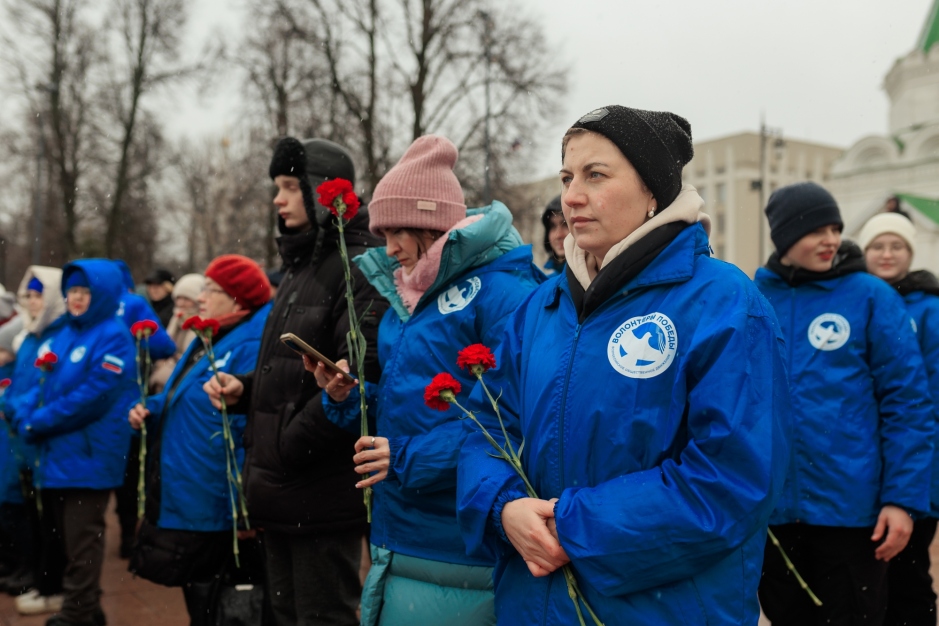 Также добровольцы в этот день возложили цветы к Вечному огню в Нижегородском кремле, почтив память павших защитников Сталинграда минутой молчания. Вместе с Волонтёрами Победы на торжественной церемонии были активисты регионального отделения Российского движения детей и молодежи «Движение первых», Центра военно-патриотического воспитания Нижнего Новгорода, представители студенческих отрядов Нижегородской области, городского студенческого совета, юнармейцы и прочие организации. Памятные мероприятия прошли во всех муниципалитетах региона.