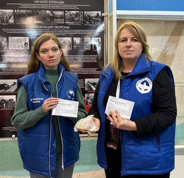 Волонтёры Победы ЗАТО г. Заозёрск провели Всероссийскую акцию памяти «Блокадный хлеб». Символом акции стал небольшой кусочек хлеба в 125 граммов. Именно такой была норма выдачи хлеба в Ленинграде в самую суровую зиму 1941-1942 гг. Волонтёры вручили школьникам и жителям города хлеб и информационные листовки в память о мужестве и стойкости непокоренного города на Неве.