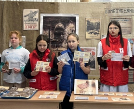 Волонтёры Победы Ковдорского политехнического колледжа провели Всероссийскую акцию памяти «Блокадный хлеб». Участники предлагали жителям и гостям нашего города, студентам Колледжа вспомнить о страшных днях блокады осажденного Ленинграда. Добровольцы раздавали информационные открытки о событиях блокады и маленькие кусочки хлеба – как напоминание о 125 граммах блокадного хлеба, ставших символом страданий ленинградцев и последней надежды на жизнь.