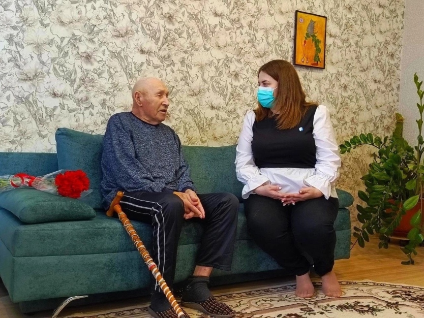 Волонтёры Победы Волжского района побывали в гостях у большого друга Движения, ветерана Великой Отечественной войны, участника Сталинградской битвы Льва Михайловича Атменеева.