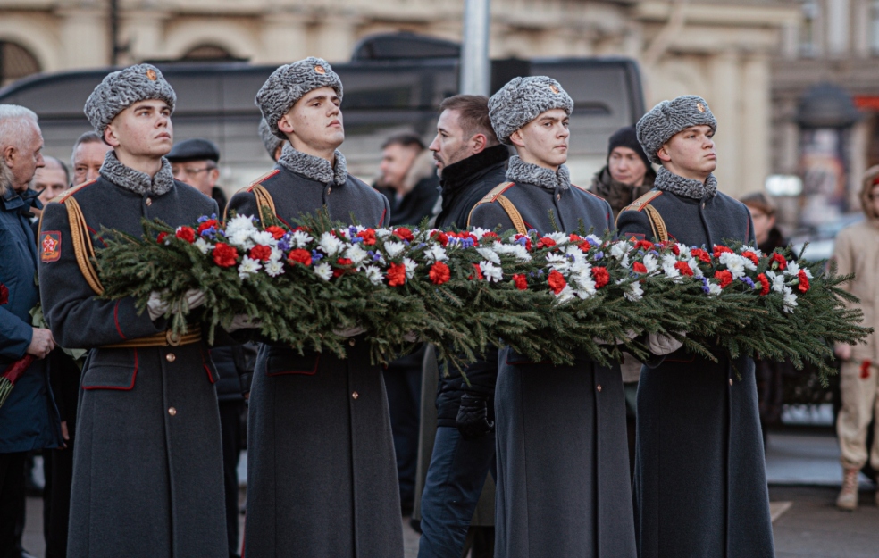 Утром 9 декабря, в День Героев Отечества, состоялась торжественно траурная-церемония возложения цветов и венков к обелиску «Городу-герою Ленинграду» на Площади Восстания.