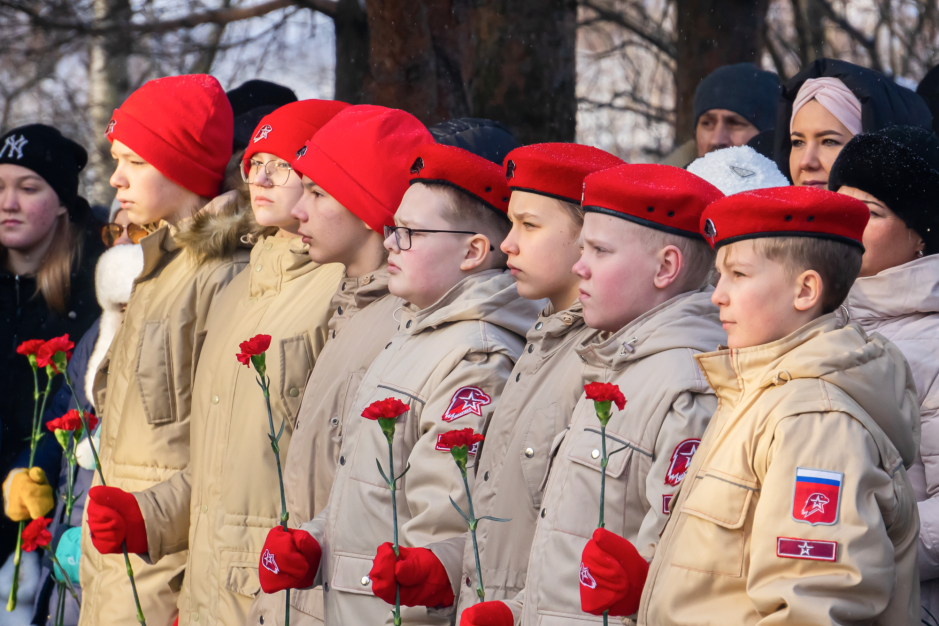 Собравшиеся почтили минутой молчания память павших героев, отдавших свои жизни при исполнении воинского долга – имена 56 бойцов высечены на мемориале «Чёрный тюльпан», их портреты во время церемонии были в надёжных руках курсантов Беломорско-Онежского филиала ФГБОУ ВО «Государственный университет морского и речного флота им. адмирала С.О. Макарова» и обучающихся «Средней общеобразовательной школы № 29 им. Сепсяковой Т.Ф.»