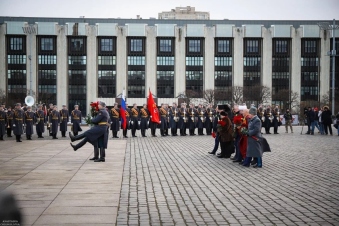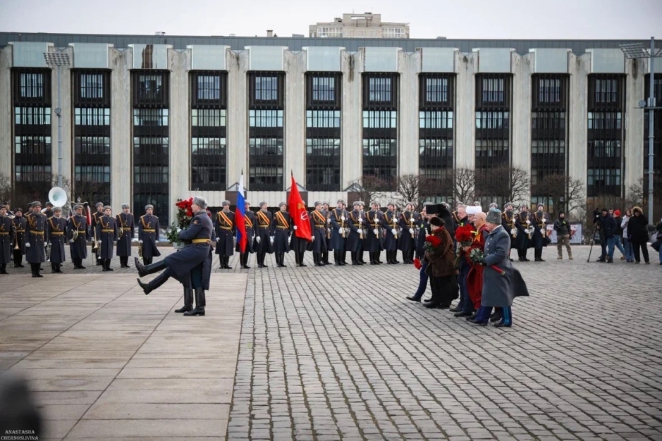 На Площади Победы прошла торжественно-траурная церемония возложения цветов к Монументу героическим защитникам Ленинграда Она началась с минуты молчания. Участие в церемонии приняли полномочный представитель Президента в Северо-Западном федеральном округе Александр Гуцан, губернатор Санкт-Петербурга Александр Беглов, а также председатель Законодательного собрания Санкт-Петербурга Александр Бельский.