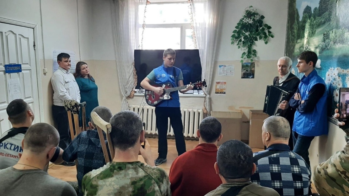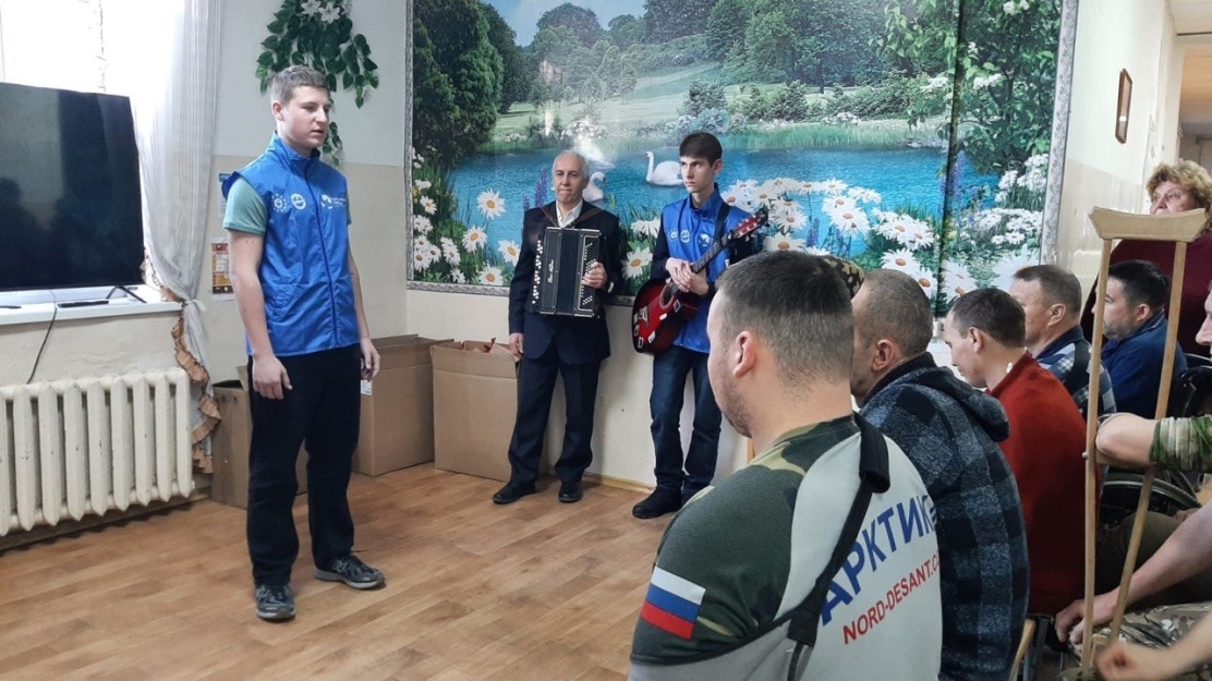 19 февраля Волонтёры Победы отправились в госпиталь с акцией «От всей души, для вас, родные», чтобы поздравить раненых с наступающим праздником. Организаторы акции подготовили программу, в рамках которой Волонтёры Победы выступили с творческими номерами.
