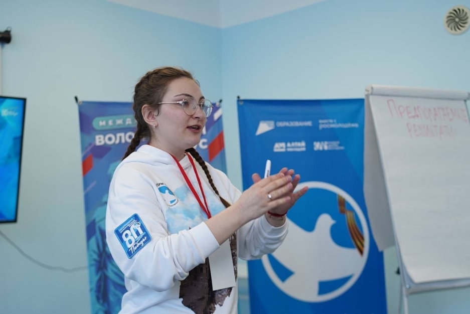 Куратор по набору, адаптации и мотивации Дарья Тагина отметила важные этапы регистрации, отбора и подготовки волонтёров корпуса. Она также рассказала о структуре сайта волонтёрыпобеды.рф и обучающей платформы «Skill cup». А Виталия Быльева, куратор по информационному сопровождению, поделилась секретами освещения деятельности корпуса Победы в социальных сетях. Отдельно Виталия рассказала о возможностях ведения личного блога, с помощью которого большое количество жителей Алтайского края смогут узнать о мероприятиях 80-летия Победы.