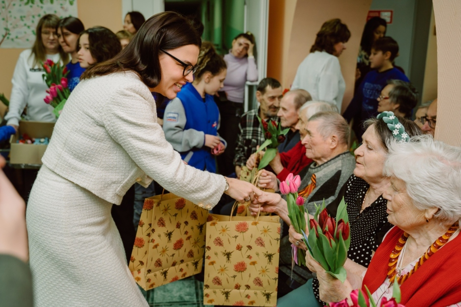 Также активисты посетили дом-интернат для престарелых и инвалидов в Зелёном городе, чтобы поздравить с наступающим праздником пожилых женщин. Подопечные Дома ветеранов танцевали с волонтёрами под баян, пели песни и частушки, делились своими воспоминаниями.