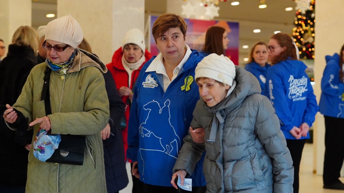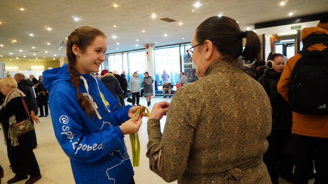 Волонтёры Победы помогали сопровождать ветеранов Великой Отечественной войны и раздавали всем желающим ленты Ленинградской Победы.