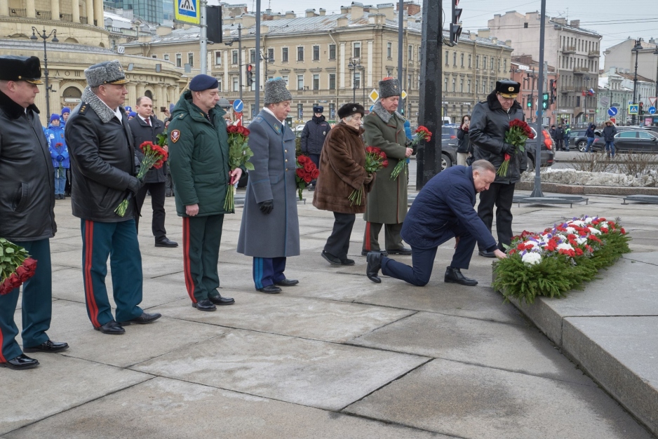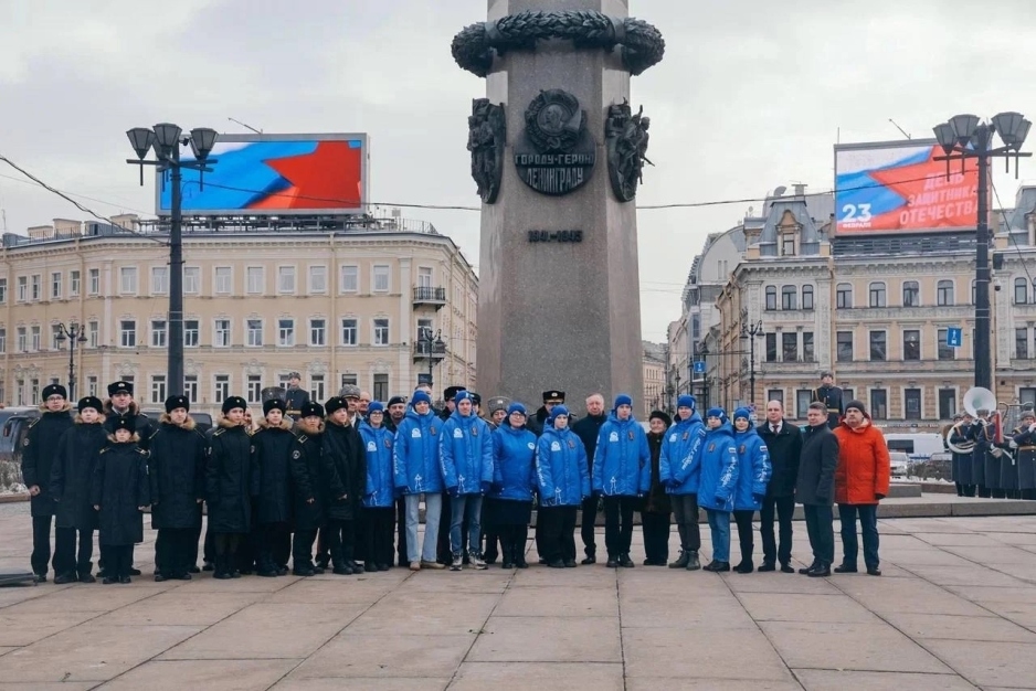 Мероприятия, посвящённые Дню защитника Отечества, начались в нашем городе с торжественно-траурной церемонии возложения цветов к обелиску «Городу-Герою Ленинграду».