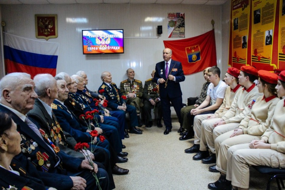 К 77-й годовщине разгрома немецко-фашистских войск под Сталинградом в городском Совете ветеранов волгоградские волонтёры и юнармейцы чествовали тех, кто самоотверженно ковал победу. Среди ветеранов Великой Отечественной войны Владимир Ананьев и Евгений Рогов.