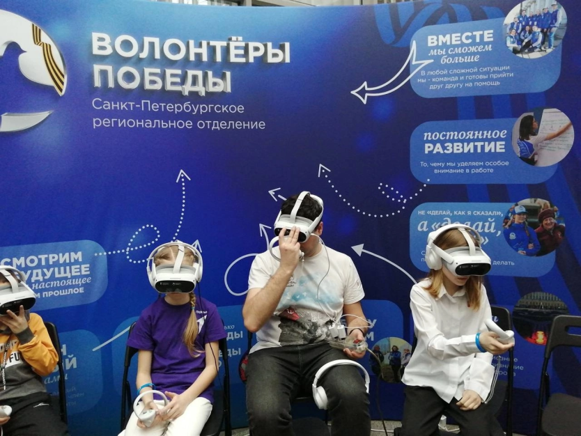 Также Санкт-Петербургское региональное отделение Волонтёров Победы представило флагманский VR-проект по истории блокадного Ленинграда. В течение дня десятки семей смогли побывать на улицах блокадного города с помощью очков виртуальной реальности.