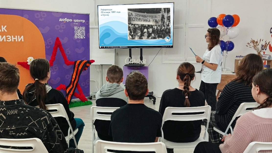 Добровольцы рассказали об истории Крымского полуострова, событиях весны 2014 года, природе и достопримечательностях Крыма. Кроме того, в завершении мероприятия ребята провели интерактивный опрос, рассчитанный на внимательность, абстрактное и логическое мышление участников.