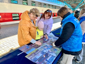 Перед отправлением на железнодорожном вокзале областной столицы гостей ждали несколько тематических площадок, одну из которых провели Волонтёры Победы. Для посетителей провели увлекательную викторину «Загадки Тавриды», где каждый смог не только блеснуть знаниями, но и открыть для себя неизвестные страницы прошлого. Атмосфера заряжала невероятной энергией, духом дружбы и искренним патриотизмом.